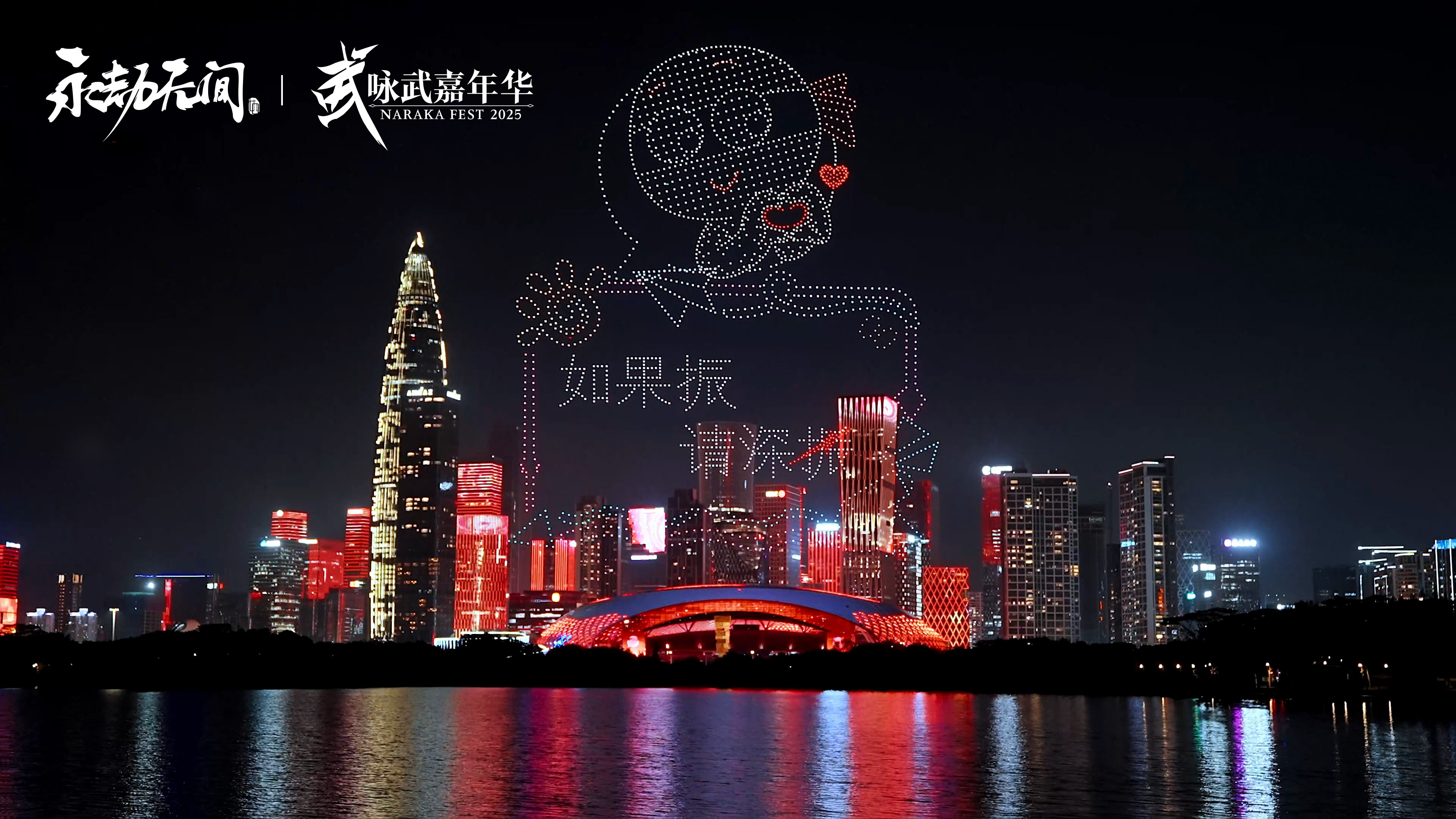 手脚“科技之齐”的献礼,行动技巧,一场限制高大的无东说念主机编队扮演在深圳湾上空轰动献技。千架无东说念主机腾空而起,以天为幕,不仅画图出烛龙、大佛等经典元素,更以光电后果迎接玩家来到深圳,来到长时不时的天下。